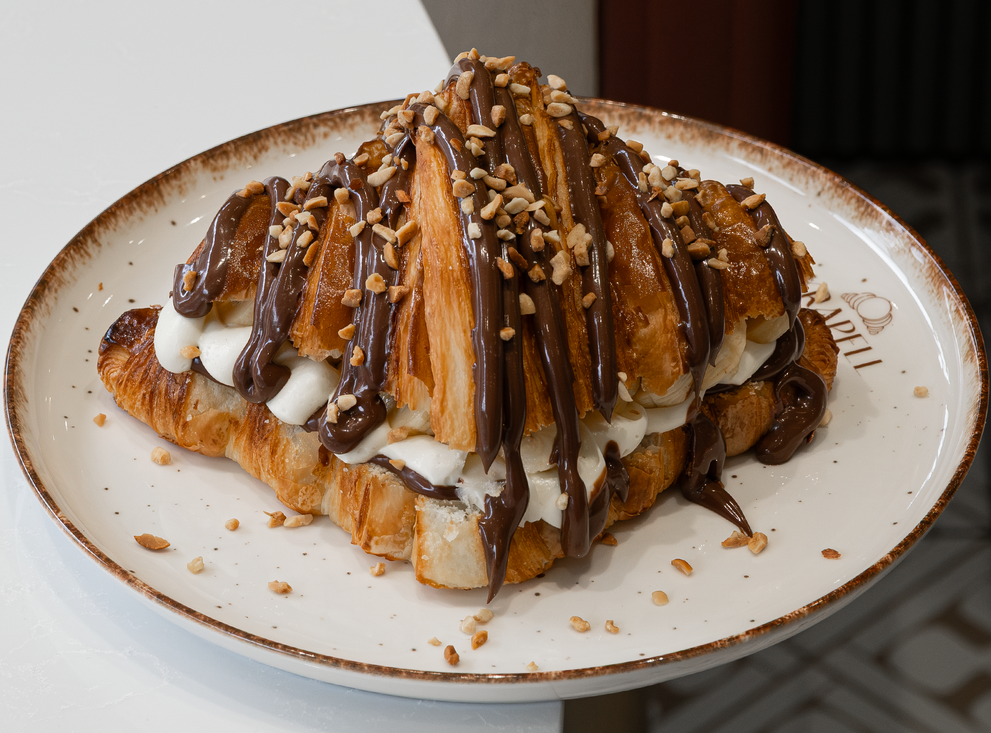 Fransız Krema üzerine Muz, Nutella Ganaj ve Parça Yer Fıstığı...