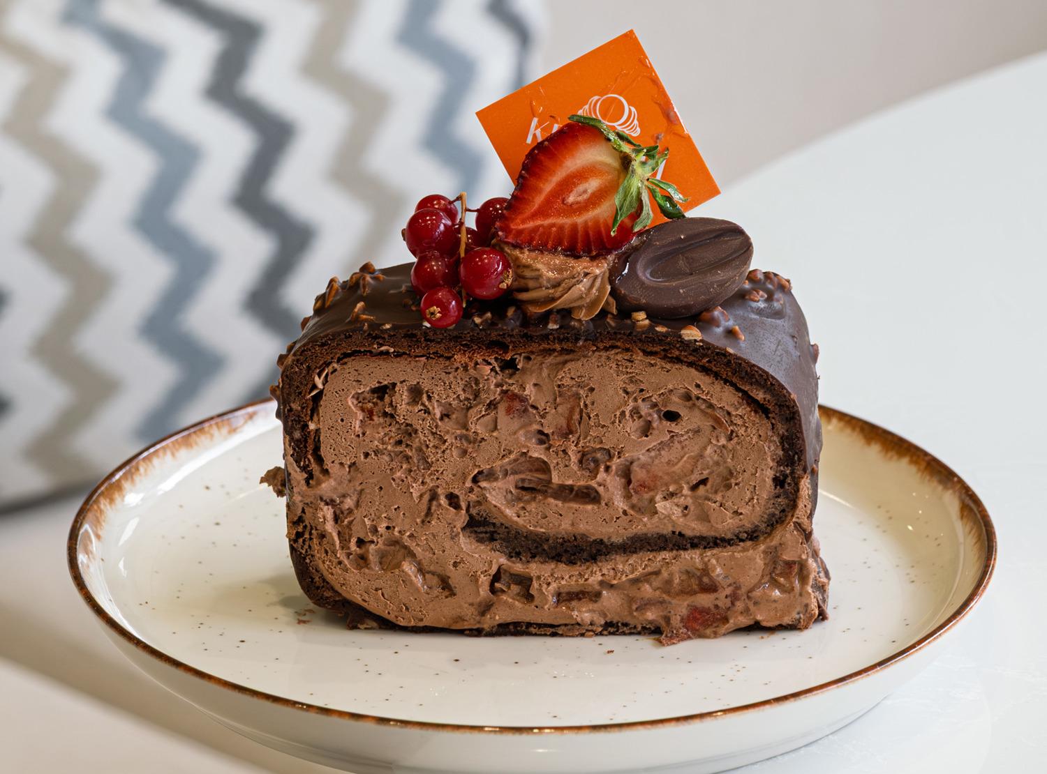 Devil's kek tabanında BİTTER, SÜTLÜ ve BEYAZ Çikolatalı Mousse Krema...
