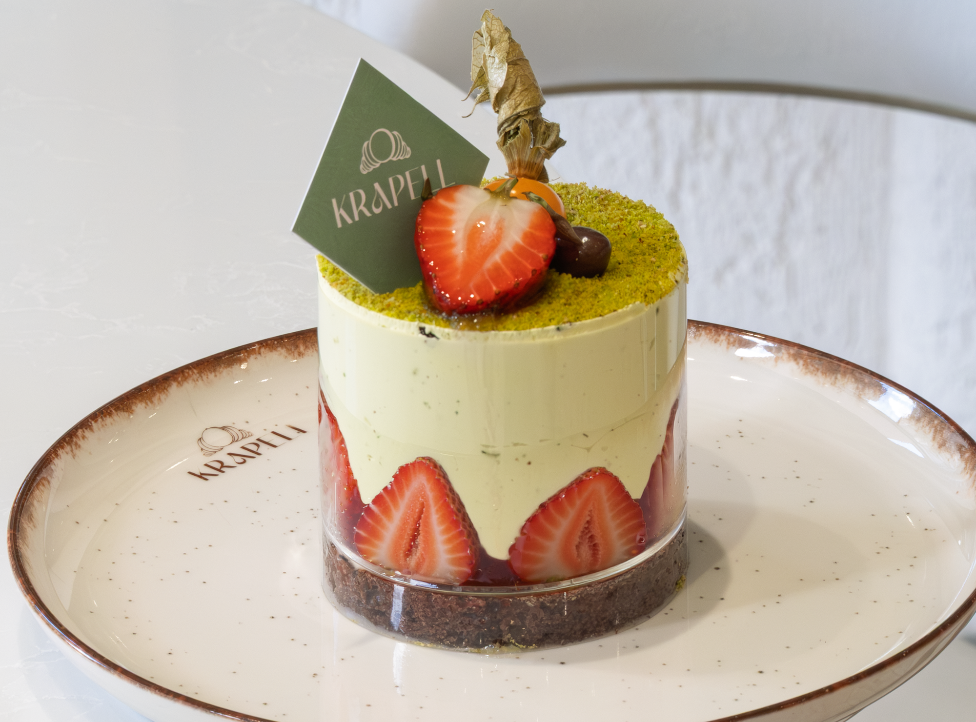 Fıstıklı Beze Katları, Hafif Kreması ve Taze Çilek ile Dengeli, Klasik bir lezzet...