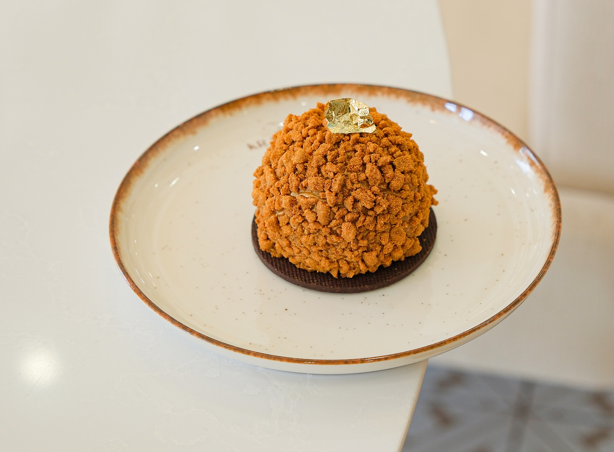Dubai dilim katmanlı cheesecake üzeri Antep fıstığı pralin.