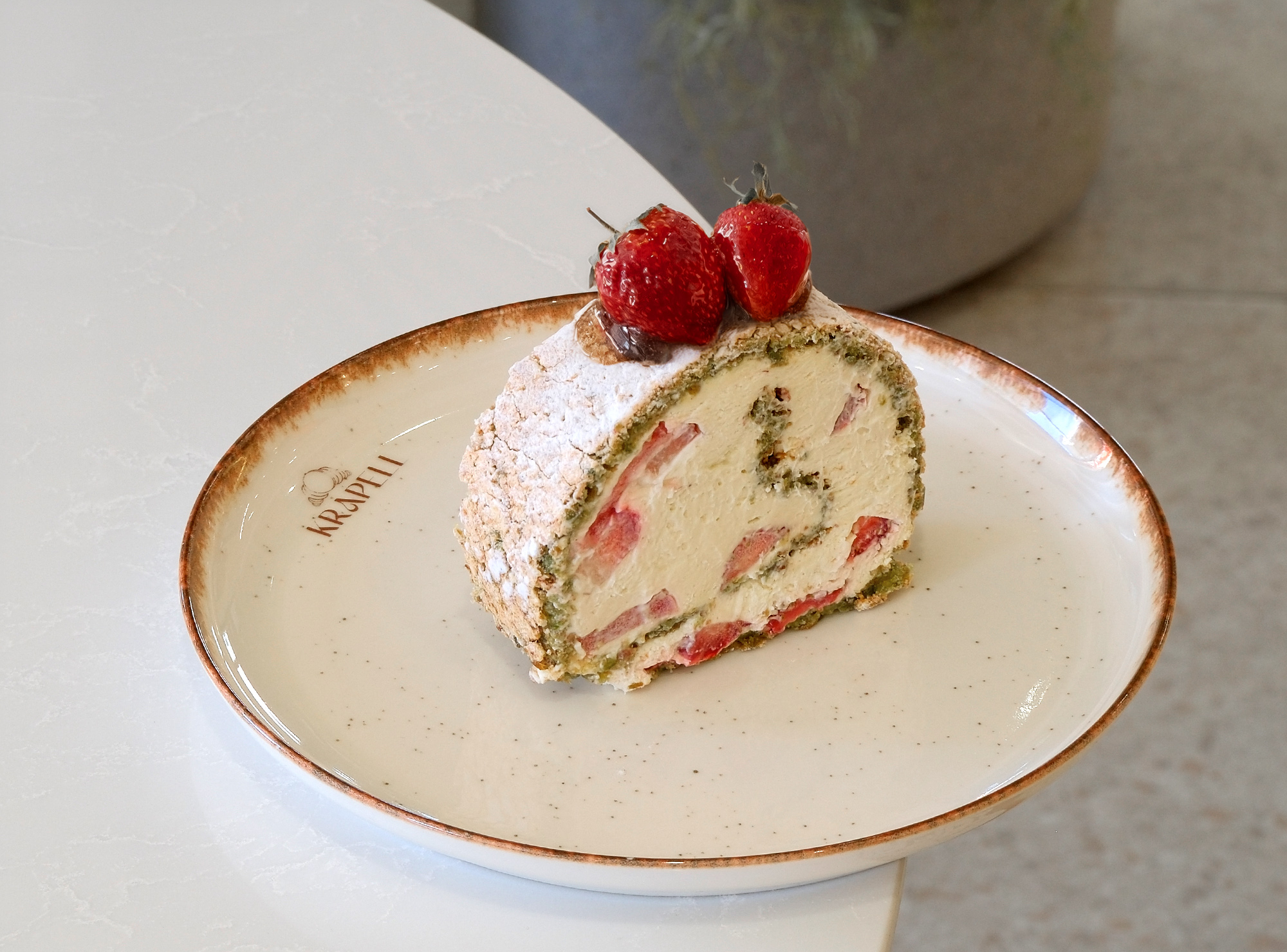 Çilek,Fransız Krama,Fıstıklı kek
