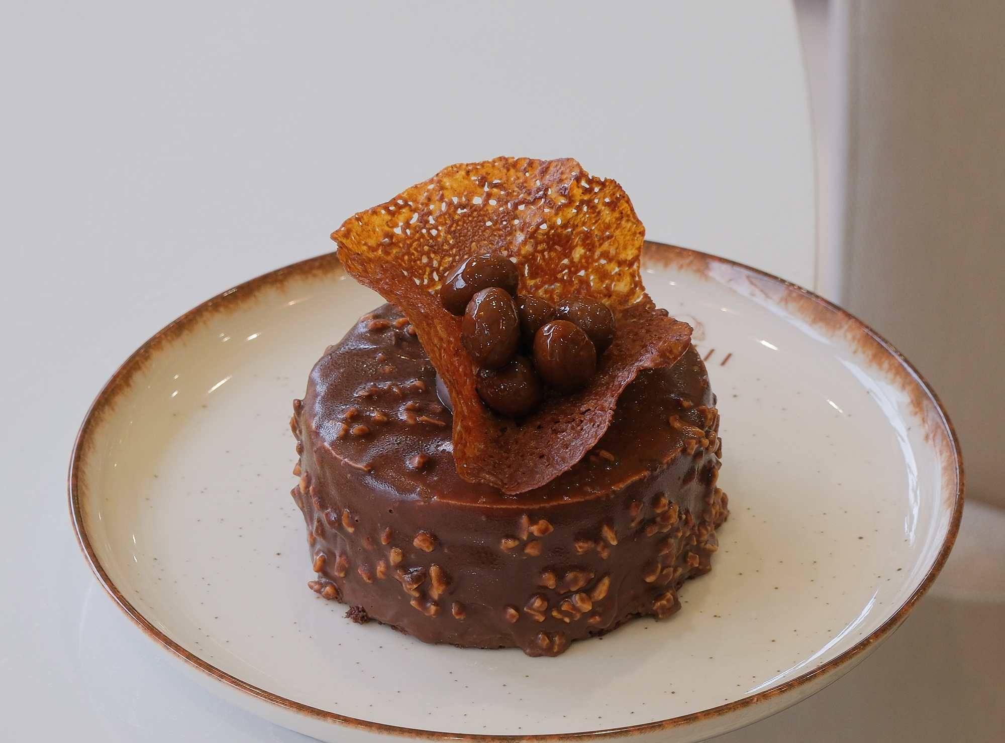 Fıstıklı mousse, fıstık pralin, fıstıklı sponge.