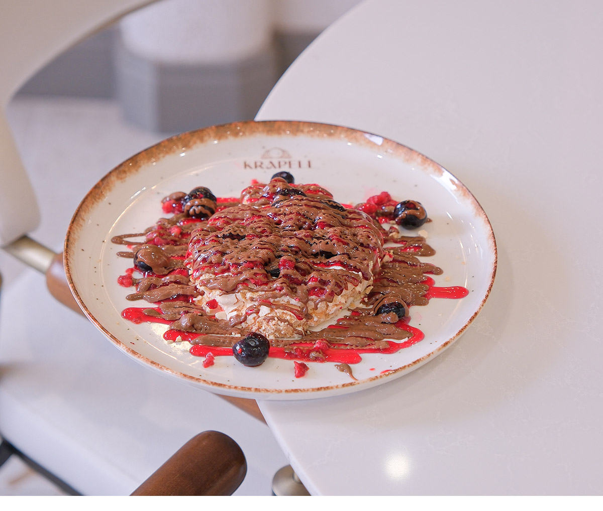 İmza Krema tarifi ile, Çilek, Freeze Fresh Frambuaz ve Yaban Mersini, Nutella Sos ve Frambuaz Sos eşliğinde...